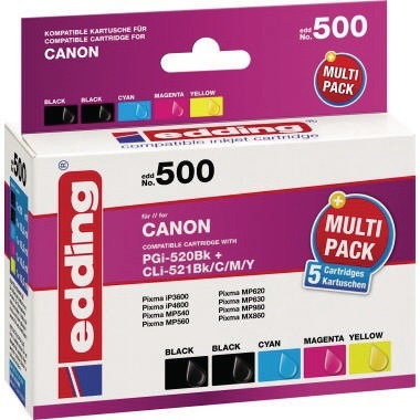 edding Tintenpatrone Canon PGI-520/CLI-521 EDD-500 schwarz, mehrfarbig 5 St./Pack.