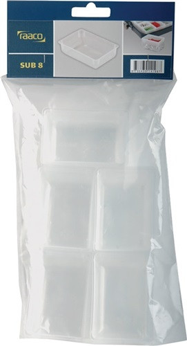 Sub-Einsatz zur Unterteilung von A9-1 und A8-1-Einsätzen · ermöglicht die getrennte Aufbewahrung von unterschiedlichen Kleinteilen im selben Einsatz · erhältlich in zwei Größen · Weitere technische Eigenschaften Material: Kunststoff