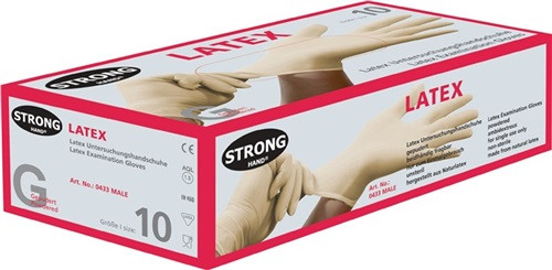 nach EN 455 · Kat. I · AQL 1.5 · lebensmittelgeprüft · Material: Latex · gepudert · beidseitig tragbar · medizinische Handschuhe zum einmaligen Gebrauch · Box à 100 St. · Anwendung: lebensmittelverarbeitende Industrie, Qualitätskontrolle, Lagerarbeiten, Verpackung, Sanitärbereich, Kleinteilmontage, Elektroindustrie, medizinische Pflegeberufe · Weitere technische Eigenschaften Kategorie: I • Ausführung: gepudert, lebensmittelgeprüft • Norm: EN 455
