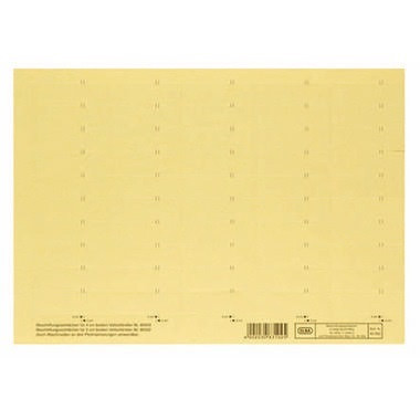Blanko. · Anzahl der Schilder: 50 Schilder · max. Anzahl der Druckzeilen: 4 Druckzeilen · Werkstoff: Karton · wieder ablösbar: Nein · Verwendung für Produkt: Sichtreiter ELBA vertic Komfort · Grammatur: 160 g/m² · Beschreibung der Besonderheiten: blanko · Farbe: gelb · Maße: 58 x 18 mm (B x H)