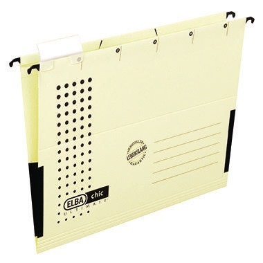 Beschriftungsmöglichkeit mit ELBA print. Die Metall-Hängeschienen haben pulverbeschichtete Enden. · max. Anzahl der Blätter: 330 Bl. (80 g/m²) · Verwendung für Papierformat: DIN A4 · Werkstoff: Karton · Packungsmenge: 5 St./Pack. · Maße: 31,8 x 24 x 0,6 cm (B x H x T) · Grammatur: 240 g/m² · Farbe: chamois · Anordnung der Lage (Öffnungsseite): oben offen · Ausführung der Lieferzusammenstellung: inkl. Schlitzstanzung für Einsteck-Heftstreifen, Sichtreiter