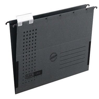 Beschriftungsmöglichkeit mit ELBA print. Die Metall-Hängeschienen haben pulverbeschichtete Enden. · max. Anzahl der Blätter: 330 Bl. (80 g/m²) · Verwendung für Papierformat: DIN A4 · Werkstoff: Karton · Packungsmenge: 5 St./Pack. · Grammatur: 240 g/m² · Farbe: anthrazit · Ausführung der Lieferzusammenstellung: inkl. Schlitzstanzung für Einsteck-Heftstreifen, Sichtreiter · Anordnung der Lage (Öffnungsseite): oben offen · Maße: 31,8 x 24 x 0,6 cm (B x H x T)