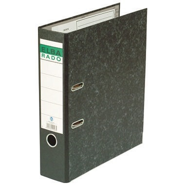 Beschriftungsmöglichkeit mit ELBA print. Ordner mit Qualität in ihrer ursprünglichsten Form. Hochwertige ELBA Präzisionsmechanik und zwei rado-Ösen für ein platzsparendes und standfestes Aufstellen des Ordners. · Werkstoff: Pappe · max. Anzahl der Blätter: 570 Bl. (80 g/m²) · Rückenbreite: 80 mm · Schlitze vorhanden: Ja · Sichttasche am Rücken vorhanden: Nein · Typbezeichnung der Ordnermechanik: Hebelmechanik · Verwendung für Papierformat: DIN A4 · Material der Kaschierung innen: Papier · Kantenschutz vorhanden: Ja · Typbezeichnung des Motivs: Wolkenmarmor · Breite: 285 mm · Material der Kaschierung außen: Papier · Blattniederhalter vorhanden: Ja · Deckblatt vorhanden: Ja · Einstecktasche vorhanden: Nein · Farbe des Rückens: schwarz · Griffloch vorhanden: Ja · Höhe: 318 mm · Maße: 28,5 x 31,8 cm (B x H) · Ausführung der Ablagemechanik: 2 Bügel