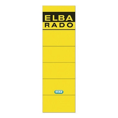 ELBA Ordnerrückenetikett breit/kurz 59 x 190 mm (B x H) ohne Griffloch grün 10 Etik./Pack. · Griffloch vorhanden: Nein · Verwendung für Druck- oder Schreibgerät: Schreibgeräte · Text des Aufdruckes: ELBA RADO · selbstklebend: Ja · Maße: 59 x 190 mm (B x H) · Höhe des Schildes: 190 mm · Verwendung für Produkt: Ordner 10404, 10409 · Anzahl der Blätter je Packung: 10 Bl./Pack. · Anzahl der Etiketten je Blatt: 1 Etik./Bl. · Werkstoff: Papier · Format des Schildes: breit/kurz · Anzahl der Etiketten je Packung: 10 Etik./Pack. · Aufdruck vorhanden: Ja · Breite des Schildes: 59 mm · Farbe des Aufdrucks: schwarz · Farbe: gelb