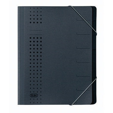 Im attraktiven, modernen Punkt-Design. Vorderdeckel mit Tabaufdruck und Feineinteilungen zum Beschriften. · Farbe: anthrazit · Anzahl der Fächer: 7 Fächer · Verwendung für Papierformat: DIN A4 · Material des Einbandes: Karton · Maße: 25 x 31,5 cm (B x H) · Grammatur: 450 g/m² · Breite: 250 mm · Beschriftungsfeld vorhanden: Ja · Ausführung der Tabe: blanko · Art des Verschlusses: Gummizugverschluss · Höhe: 315 mm