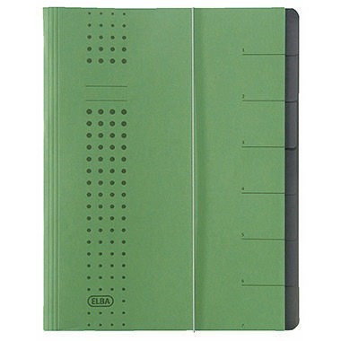 Im attraktiven, modernen Punkt-Design. Vorderdeckel mit Tabaufdruck und Feineinteilungen zum Beschriften. · Grammatur: 450 g/m² · Material des Einbandes: Karton · Verwendung für Papierformat: DIN A4 · Maße: 25 x 31,5 cm (B x H) · Höhe: 315 mm · Breite: 250 mm · Beschriftungsfeld vorhanden: Ja · Ausführung der Tabe: blanko · Farbe: grün · Art des Verschlusses: Gummizugverschluss · Anzahl der Fächer: 7 Fächer