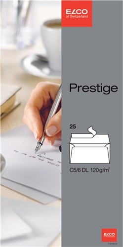 ELCO Briefumschlag Prestige DIN B6 ohne Fenster 120g/m² mit Haftklebung Papier hochweiß 25 St./Pack. · Fenster vorhanden: Nein · Verschlusstechnik: mit Haftklebung · Seidenfutter vorhanden: Nein · Paper by Nature: Nein · Werkstoff: Papier · Innendruck vorhanden: Nein · Forest Stewardship Council (FSC): Ja · Farbe: hochweiß · Blauer Engel: Nein · Ausführung des Inhalts (Packung): 25 St./Pack. · Format des Umschlages: DIN lang+ · Grammatur: 120 g/m²