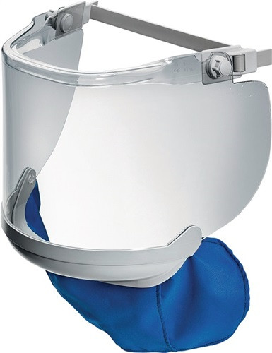 Schutzschirm für Elektromonteure zum Schutz gegen Fehlschaltungen und Störlichtbögen der Klasse 2 (7 kA) · aus 1,7 mm dickem Polycarbonat · nach DIN 166 + DIN GS-ET-29 geprüft · mit Kinnschutz · komplett aus Kunststoff gefertigt · passt auf viele Helme · die Schutzscheibe geht bis über die Ohren und schützt somit auch die seitlichen Partien des Kopfes · Schutzscheibe ist gebördelt und dichtet den Schirm von oben ab · Scheibe ist hochklappbar und durch eine Schraubverbindung in jeder Position feststellbar · wird durch einen breiten, verstellbaren Gummizug rutschfest am Helm befestigt · Weitere technische Eigenschaften Ausführung: PC, klar • Norm: EN 166, EN 168, EN 169, EN 170
