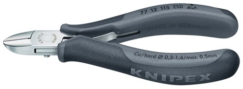 Elektron.Seitenschneider L.115mm spitz kl.Facette KNIPEX Mehrkomp.-Hüllen ESD