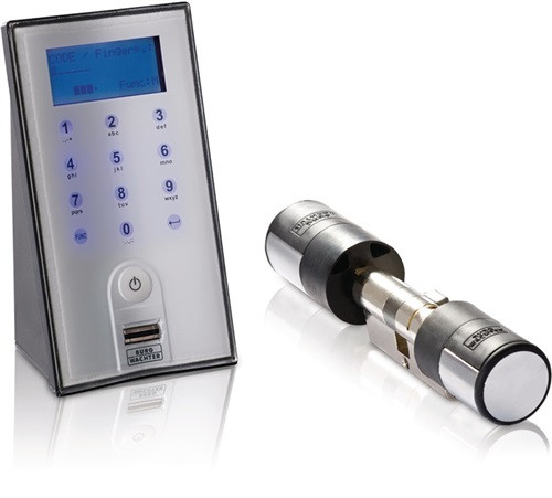 Komplett Set für Innen- und Außentüren: Elektronischer TSE-Profil-Zylinder mit Funkverbindung zum Keypad FINGERSCAN, inkl. Batterien, Bedienungs und Einbauanleitung Schutzklasse: IP55 Anzahl möglicher Benutzer: 48 Anzahl möglicher E-Keys: 47 Sicher: Ca. 1 Million Codemöglichkeiten 6-stelliger Geheimcode Optimaler Manipulationsschutz Mit mechanischem Notschloss (2 Schlüssel) Kompatibel: Passend für alle Türstärken bis 118mm Wireless: Tastatur im Tür-Umfeld bis max. 4 m anzubringen Einfach: Montage ohne Kabel, Bohren, etc. Der elektronisch gesteuerte TSE-Profil-Zylinder ersetzt den mechanischen Profil-Zylinder Die bestehenden Beschläge bleiben erhalten PC-Fähig: Über die optional erhältliche PC-Software sind u.a. Funktionen wie Benutzerverwaltung, Vergabe von Zeitfenstern und Rechten, Auslesen der Historie etc. möglich · Weitere technische Eigenschaften Anzahl möglicher E-Keys: 47St. • Anzahl möglicher Fingerscans: 24St. • Speicherschutz ohne Batteriespannung: ja • Sichere AES Funkverschlüsselung: ja • Anzahl möglicher Pincodes: 48St. • Codemöglichkeiten: ca. 1 Million