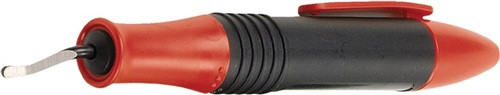 mit praktischem Taschenklipp und Klingenaufbewahrung · entgratet Stahl, Aluminium, Kupfer und Kunststoff · für gerade Kanten, Innenbearbeitung Vorderseite · Glo-Burr B: bewährtes, bequem zu fassendes Entgratwerkzeug mit Klinge B10