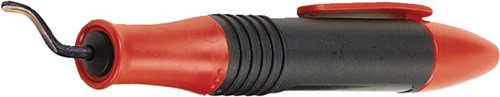 mit praktischem Taschenklipp und Klingenaufbewahrung · entgratet Stahl, Aluminium, Kupfer und Kunststoff · für gerade Kanten, Innenbearbeitung Vorderseite · Glo-Burr E: bewährtes, bequem zu fassendes Entgratwerkzeug mit Klinge E100