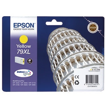 Epson Original Tintenpatronen sind optimal auf Ihren Drucker abgestimmt. Sie garantieren hohe Zuverlässigkeit, lange Haltbarkeit Ihrer Ausdrucke und problemloses Drucken über viele Jahre. · dokumentenecht: Nein · Originalzubehör: Ja · refill: Nein · Typbezeichnung der Verbrauchsmittelgruppe: 79XL · Typbezeichnung des Motivs: Pisa · Verwendung für Druckertyp: WorkForce Pro WF 4600 Serie, -5100 Serie, -5600 Serie, -5620 · nachfüllbar: Nein · Verwendung für Gerätetyp: Inkjetdrucker · Inhalt: 17,1 ml · Art der Technologie: DURABrite&trade, Ultra · Farbe: gelb · Garantie gewährt: Nein · DIN-Norm vorhanden: Nein · Ausführung der Farbe: gelb · max. Anzahl der Druckseiten: ca. 2.000 Seiten