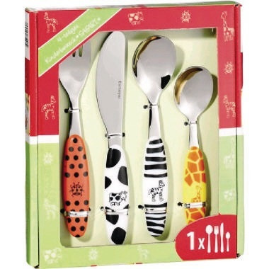 Länge der Besteckteile: Messer, Löffel, Gabel je 16 cm und der Kaffeelöffel 13 cm Im Geschenkkarton. Für Kinder ab ca. 3 Jahren geeignet. Zur Handspülung empfohlen.