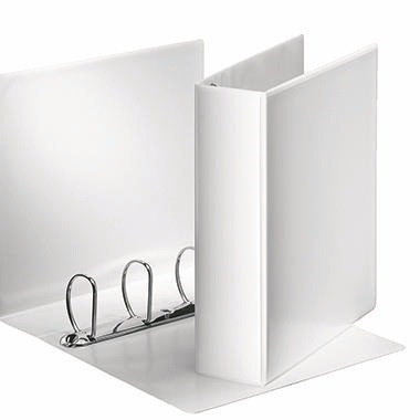 Esselte Präsentationsringbuch 86mm DIN A4 4 Ringe, D-Mechanik Graupappe weiß · Forest Stewardship Council (FSC): Ja · Material der Kaschierung außen: Polypropylenfolie · Verwendung für Papierformat: DIN A4 · Sichttasche auf dem Vorderdeckel vorhanden: Ja · Sichttasche am Rücken vorhanden: Ja · Rückenbreite: 86 mm · Material der Kaschierung innen: Polypropylenfolie · Blattniederhalter vorhanden: Nein · Maße: 28,8 x 31,9 cm (B x H) · Ausführung der Ablagemechanik: 4 Ringe, D-Mechanik · Höhe: 319 mm · Breite: 288 mm · Durchmesser des Ringes: 60 mm · Einstecktasche vorhanden: Nein · Farbe: weiß · Werkstoff: Graupappe