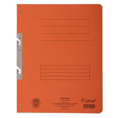 Exacompta Einhakhefter Forever® DIN A4 250g/m² Recyclingkarton grau · Werkstoff: Recyclingkarton · Zertifikat/Zulassung: Blauer Engel · Verwendung für Papierformat: DIN A4 · Organisationsaufdruck vorhanden: Ja · max. Anzahl der Blätter: 200 Bl. (80 g/m²) · Maße: 24 x 30,5 cm (B x H) · Höhe: 305 mm · Farbe: orange · Breite: 240 mm · Blauer Engel: Ja · Ausführung des Vorderdeckels: ganz · Art der Heftung: kaufmännische Heftung · Abheftvorrichtung vorhanden: Ja · Grammatur: 250 g/m²