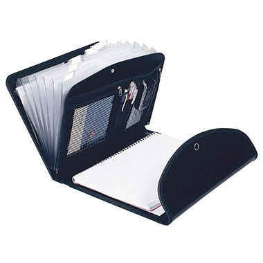 EXACTIVE-Fächermappe EXAFOLIO, mit einem auswechselbarem Schreibblock, 2 Innentaschen mit Reißverschluss und Stiftehalterung. Mit Einsteckhüllen für CDs und Visitenkarten. · Stärke: 2 mm · Greifausschnitt vorhanden: Ja · Verwendung für Papierformat: DIN A4 · Material des Einbandes: Polypropylen, recycelt · Maße: 25,5 x 33,5 cm (B x H) · Höhe: 335 mm · Farbe des Fächerblocks: transparent · Einstecktasche vorhanden: Ja · Breite: 255 mm · Ausführung der Lieferzusammenstellung: inkl. Schreibblock, 2 Innentaschen mit Reißverschluss, Stift · Farbe: schwarz · Art des Verschlusses: Druckknopf · Anzahl der Fächer: 6 Fächer
