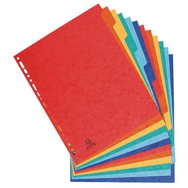 Auch mit Prospekthüllen zu verwenden. · Farbe: farbig sortiert · Verwendung für Papierformat: DIN A4, Überbreite · Organisationsaufdruck vorhanden: Nein · Maße: 27,4 x 32,7 cm (B x H) · Lochrandverstärkung vorhanden: Nein · Forest Stewardship Council (FSC): Ja · Werkstoff: Manilakarton · Deckblatt vorhanden: Nein · Beschriftungsschild auswechselbar: Nein · Ausführung des Registers: volle Höhe · Ausführung der Tabe: blanko · Ausführung der Lochung: 18fach Lochung · Anzahl der Registerblätter: 12 Registerblätter · Grammatur: 225 g/m²