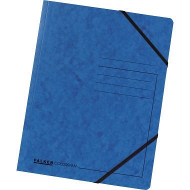 Eckspanner in leuchtenden Farben. Zur Ablage und Aufbewahrung von losen Unterlagen. · Grammatur: 355 g/m² · Verwendung für Papierformat: DIN A4 · Prägung vorhanden: Nein · max. Anzahl der Blätter: 200 Bl. (80 g/m²) · Maße: 24 x 32 cm (B x H) · Höhe: 320 mm · Farbe: blau · Breite: 240 mm · Beschriftungsfeld vorhanden: Nein · Art des Verschlusses: Gummizugverschluss · 3 Klappen (Jurisklappen) am Unterdeckel vorhanden: Nein · Forest Stewardship Council (FSC): Ja · Werkstoff: Colorspankarton