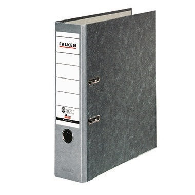 Falken Ordner 80mm DIN A4 Werkstoff: Pappe Material der Kaschierung außen: Papier Material der Kaschierung innen: Papier schwarz · Zertifikat/Zulassung: Blauer Engel, LGA-Qualitätszertifikat · max. Anzahl der Blätter: 600 Bl. (80 g/m²) · Rückenbreite: 80 mm · Schlitze vorhanden: Ja · Sichttasche am Rücken vorhanden: Nein · Sichttasche auf dem Vorderdeckel vorhanden: Nein · Typbezeichnung der Ordnermechanik: Hebelmechanik · Typbezeichnung des Motivs: Wolkenmarmor · Werkstoff: Pappe · Material der Kaschierung innen: Papier · LGA-Qualitätszertifikat: Ja · Verwendung für Papierformat: DIN A4 · Blauer Engel: Ja · Material der Kaschierung außen: Papier · Ausführung der Ablagemechanik: 2 Bügel · Breite: 285 mm · Deckblatt vorhanden: Nein · Einstecktasche vorhanden: Nein · Farbe des Rückens: grau · Griffloch vorhanden: Ja · Höhe: 318 mm · Kantenschutz vorhanden: Ja · Maße: 28,5 x 31,8 cm (B x H) · Forest Stewardship Council (FSC): Ja