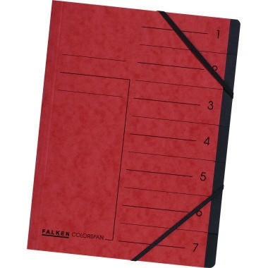 Zur Organisation von Unterlagen. · Farbe: rot · Organisationsaufdruck vorhanden: Ja · Material des Einbandes: Colorspankarton · Maße: 24 x 32 cm (B x H) · Greifausschnitt vorhanden: Ja · Forest Stewardship Council (FSC): Ja · Verwendung für Papierformat: DIN A4 · Breite: 240 mm · Beschriftungsfeld vorhanden: Ja · Ausführung der Tabe: blanko · Art des Verschlusses: Gummizugverschluss · Anzahl der Fächer: 7 Fächer · Grammatur: 355 g/m²