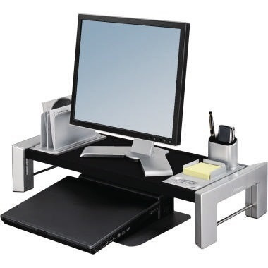 Höhenverstellbar in 3 Stufen für maximalen persönlichen Komfort. Veränderbare Ablagefläche mit versetzbaren Aufbewahrungs- und Sortierelementen. Laptop Slick-Slid(tm) Matte für bequeme Aufbewahrung und Zugang zu Laptop und/oder Docking Station unter der Ablagefläche. Integriertes Kabelmanagement. · rutschfest: Ja · Werkstoff: Kunststoff · Verwendung für Produkt: Monitore 53,3 cm (21") · Verstellbereich: 75-120 mm · Tragfähigkeit: 18 kg · Tiefe: 295 mm · Ausführung des Inhalts (Set): 1 Monitorständer + 1 Slick-Slide Matte GRATIS! · Schublade vorhanden: Nein · min. Höhe: 75 mm · max. Höhe: 14 cm · Maße: 65 x 12 x 29,5 cm (B x H x T) · Konzepthalter vorhanden: Nein · höhenverstellbar: Ja · Farbe: grau/silber · Breite: 650 mm · Tastatureinschub/Tastaturfach vorhanden: Nein