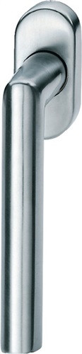 nach DIN EN 13126-3 · L-förmige, in der von Mallet-Stevens 1923 entworfenen Gestaltung, bei der zwei Rundstäbe in einem Gehrungsschnitt von 90 Grad zusammengesetzt worden sind · Grifflänge ca. 137 mm · 4-Punkt-Kugelrastung zur sauberen spürbaren und hörbaren Positionierung des Fenstergriffs in 90 Grad Schritten · dauerhafter Gleichlauf · Befestigung unsichtbar · mit stabilisierenden Stütznocken, Durchmesser 10 mm, zum verschiebefreiem Sitz an den Fenstern · Verschraubung M5 · Entfernung der Befestigungspunkte 43 mm · Rosettenmaße ca. Höhe 70 x Breite 32,5 mm · Rosettenstärke ca. 14 mm · 7 mm Vollstift · Weitere technische Eigenschaften Grifflänge: 125mm • Nocken-Ø: 10mm • Lochabstand: 43mm • Sockelstärke: 14mm • Anschlagrichtung: DIN links / rechts • Vierkant: 7mm • Prüfung: RAL-RG 607/9