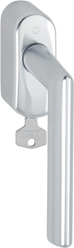 Dreh-/Kipp-Fenstergriff SecuSelect® mit Secu100® + Secustik®, abschließbar · geprüft nach DIN EN 13126-3: 23/180-0132/33/C1 und RAL-GZ 607/9, RAL100, erfüllt die Anforderungen nach DIN EN 1627-1630 RC1-6 · Schließung: Druckzylinder, Wendeschlüssel · Rastung: 90° · Abdeckung: Voll-Abdeckkappe · Unterkonstruktion: Zamak, Stütznocken · Stift: HOPPE-Schnellstift mit HOPPE-Vollstift · Befestigung: verdeckt, Gewindeschrauben M5 · Besonderheit: integrierte Basis-Sicherheit · Weitere technische Eigenschaften Grifflänge: 132mm • Nocken-Ø: 10mm • Lochabstand: 43mm • Sockelstärke: 34mm • Anschlagrichtung: DIN links / rechts • Vierkant: 7mm • Prüfung: RAL-GZ 607/9
