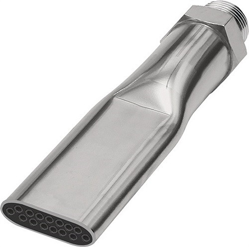 für Blasepistole in Standardausführung · mit diesen lärmreduzierenden Düsen wird bei korrekter Auslegung, im Vergleich zu herkömmlichen Einlochdüsen, bei gleicher Blaskraft ein niedriger Geräuschpegel erreicht. Sie sind überwiegend mit einem lärmmindernden Kunststoffeinsatz bestückt und werden vom Berufsgenossenschaftlichen Institut empfohlen · Weitere technische Eigenschaften Breite: 21mm • Länge: 100mm