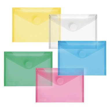 FolderSys Sammelhülle DIN A6 quer Polypropylen je 2 x transparent, blau, grün, gelb, rot 10 St./Pack. · Dicke der Folie: 0,2 mm · Maße: 17,6 x 12,5 cm (B x H) · Werkstoff: Polypropylen · Verwendung für Papierformat: DIN A6 quer · Packungsmenge: 10 St./Pack. · dokumentenecht: Ja · Anordnung der Lage (Öffnungsseite): oben offen · Ausführung der Oberflächenbeschaffenheit: matt · Art des Verschlusses: Klettverschluss · Farbe: je 2 x transparent, blau, grün, gelb, rot