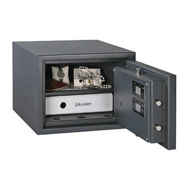 Möbeleinsatztresore mit 30 minütigem zertifiziertem Brandschutz und zusätzlich zertifiziertem Einbruchschutz. In der Dokumentensicherung das idealle Einstiegsmodell insbesondere für private, aber auch geschäftliche Nutzer. Zertifiziert S2 nach EN 14450 & 15659 und zusätzlich LFS 30 und EN 1 6 9. Serienmäßig mit Doppelbart-Sicherheitsschloss. Tür 3-wandig mit sicherer 3-seitiger Verriegelung durch Schließbolzen und starre Bolzen an der Bandseite. Allseitig doppelwandiger Korpus. Serienmäßig ausgestattet mit 2 Bohrungen im Boden, inkl. Verankerungsmaterial. · Innenmaße: 33,2 x 23,5 x 30,4 cm (B x H x T) · Anzahl der Fachböden: 1 Fachboden · Werkstoff: Stahlblech · max. Öffnungswinkel: 180 ° · Masse (Gewicht): 55 kg · Durchmesser des Bolzens: 20 mm · Außenmaße: 43 x 32,5 x 45 cm (B x H x T) · Farbe: graphitgrau · Anzahl der Schlüssel: 2 Schlüssel · Art des Verschlusses: Bolzen