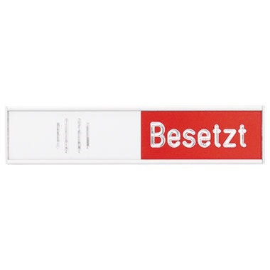 Manuelle Besetztanzeige für Türen und Wände in Deutsch. Schieber ist graviert. · Befestigungstechnik: Klebestreifen · Farbe des Rahmens: silber · Farbe: rot, grün · Maße: 102 x 27,4 mm (B x H) · Text des Aufdruckes: frei/besetzt · Werkstoff: Aluminium