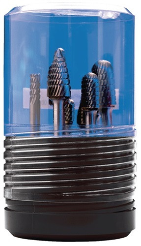 Hartmetall · mit Zahnung MX NCC · Schaft-Ø 6 mm · Bestehend aus je 1 Stück Frässtift: Zylinderform ohne Stirnverzahnung 6 x 16, 12 x 25, Kugelform 10 x 9, 12 x 10, Kugelzylinderform 6 x 16, 12 x 25, Geschossform 6 x 18, 12 x 25, Baumform 6 x 18, Baumform 12 x 25 · Weitere technische Eigenschaften Inhalt: 10 teilig • Verpackung: Kunststoffrundbox