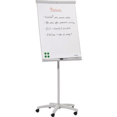 Das Sparmodell für bewegliche Einsteiger. Aus mehr als 60 % wiederaufbereiteten Industrieabfällen. Zu 99 % recycelbar. · Maße: 70 x 186 cm (B x H) · Neigungswinkel: 15 ° · Tafel beschreibbar: Ja · Tafel magnethaftend: Ja · Typbezeichnung der Stativform: Einbeinstativ · Verpackung: Karton · Zertifikat/Zulassung: Blauer Engel · Maße der Oberfläche: 70 x 100 cm (B x H) · Werkstoff: Stahl/Kunststoff · höhenverstellbar: Nein · Gesamthöhe: 186 cm · Farbe des Gestells: hellgrau · Durchmesser der Standfläche: 70 cm · Blauer Engel: Ja · Ausführung des Fußes: Sternfuß mit 5 Rollen · Ablageschale vorhanden: Ja · abwischbar: Ja · Masse (Gewicht): 13 kg