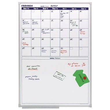 Mit großem Notizfeld: 530 x 370 mm (B x H). Jedes Jahr neu zu verwenden. · Farbe: weiß · Zubehör für die Wandbefestigung: Befestigungsmaterial · Tafel magnethaftend: Ja · Tafel beschreibbar: Ja · Oberflächenbeschaffenheit: lackiert · Maße: 60 x 90 cm (B x H) · Farbe des Rahmens: silbereloxiert/hellgrau · Ausführung der Zeiteinteilung: 5 Wochen · Abmessung des Tagesfeldes: 75 x 80 mm (B x H) · Ablageschale vorhanden: Ja · Material des Rahmens: Aluminium/Kunststoff