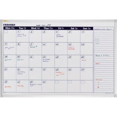 Mit Extraspalte für die Vorplanung des Folgemonats. Vorplanungsfeld: 160 x 18 mm (B x H). Jedes Jahr neu zu verwenden. · Maße: 90 x 60 cm (B x H) · Zubehör für die Wandbefestigung: Befestigungsmaterial · Tafel magnethaftend: Ja · Tafel beschreibbar: Ja · Produktverwendung: Vorplanung für den nächsten Monat · Material des Rahmens: Aluminium/Kunststoff · Farbe: weiß · Farbe des Rahmens: silbereloxiert/hellgrau · Ausführung der Zeiteinteilung: 1 Monat · Abmessung des Tagesfeldes: 98 x 96 mm (B x H) · Ablageschale vorhanden: Ja · Oberflächenbeschaffenheit: lackiert