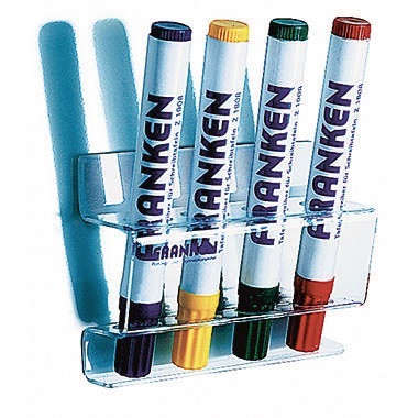 Praktische Aufbewahrungsmöglichkeit für Tafelschreiberhalter. Aufbewahrung von 4 Tafelschreibern möglich. Marker werden Senkrecht aufbewahrt. Lieferung ohne Marker. · Farbe: transparent · magnetisch vorhanden: Ja · Verwendung für Produkt: 4 Tafelschreiber · Werkstoff: Acryl