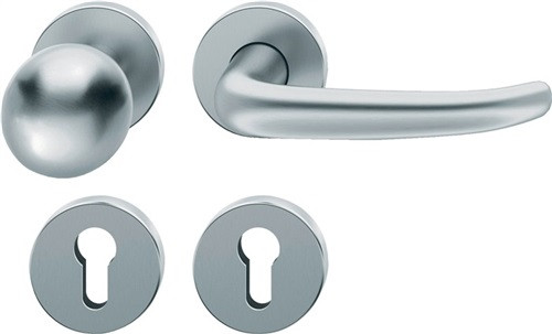 in FSB Form 1023 · Drückerführung fest verbunden mit der Rosette · geprüft nach DIN 18273 · PZ Schlüsselrosetten · für Notausgänge nach EN 179 · Drücker Vierkant 9 mm · inkl. Befestigungsmaterial für durchgehende Verschraubung · vorgerichtet für Türstärken von 39 - 48 mm · durch die patentierte AGL 3 (Ausgleichlager-Technik) werden Belastungswerte erzielt, die über die Anforderungen der DIN EN 1906 hinausgehen · die ausgereifte Technik ist seit Jahren im Markt bewährt und anerkannt · Wechsel-Garnitur mit Kugel-Knopf (23 0802) · Lochung PZ · Edelstahl feinmatt · Weitere technische Eigenschaften Ergänzung: D/K • Norm: DIN 18273 • Lagerung: fest-drehbar-gelagert • Vierkant: 9mm