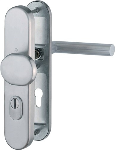 für Außentüren · geprüft nach DIN 18257 und DIN 18273 · Türgriff fest/drehbar gelagert · wartungsfreies Gleitlager · Profilvollstift-Verbindung · Stahl-Unterkonstruktion inkl. Stütznocken · verdeckt, durchgehende Befestigung · Lochung PZ · Vierkant 9 mm · Material Edelstahl matt · für Türstärke 42-47 mm · DIN links / rechts verwendbar · Entfernung 72 mm · Weitere technische Eigenschaften Ergänzung: D/K • Widerstandsklasse: ES 1 • Zylinderabdeckung: ohne ZA • Norm: DIN 18273 • Lagerung: fest-drehbar-gelagert • Vierkant: 9mm