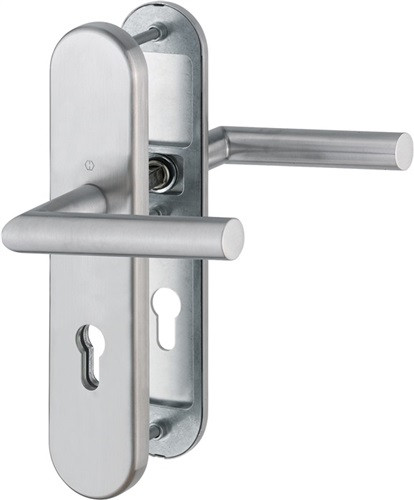 für Außentüren · geprüft nach DIN 18257 und DIN 18273 · Türgriff fest/drehbar gelagert · wartungsfreies Gleitlager · Profilvollstift-Verbindung · Stahl-Unterkonstruktion inkl. Stütznocken · verdeckt, durchgehende Befestigung · Lochung PZ · Vierkant 9 mm · Material Edelstahl matt · für Türstärke 42-47 mm · DIN links / rechts verwendbar · Entfernung 72 mm · Weitere technische Eigenschaften Ergänzung: D/D • Widerstandsklasse: ES 1 • Zylinderabdeckung: ohne ZA • Norm: DIN 18273 • Lagerung: fest-drehbar-gelagert • Vierkant: 9mm