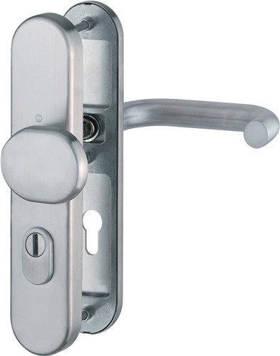 für Außentüren · geprüft nach DIN 18257 und DIN 18273 · außen gekröpfter Knopf · Türgriff fest/drehbar gelagert · wartungsfreies Gleitlager · Profilvollstift -Verbindung · Stahl-Unterkonstruktion inkl. Stütznocken · verdeckt, durchgehende Befestigung · Lochung PZ · Vierkant 9 mm · Edelstahl fein matt · Türstärke 42-47 mm · DIN links / rechts verwendbar · Entfernung 72 mm · Weitere technische Eigenschaften Ergänzung: D/D • Widerstandsklasse: ES 1 • Zylinderabdeckung: ohne ZA • Norm: DIN 18273 • Lagerung: fest-drehbar-gelagert • Vierkant: 9mm