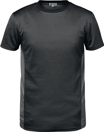 Material: 100 % Polyester, ca. 170 g/m² · der Oberstoff besteht aus mehrere Schichten und wurde speziell dafür entwickelt den Schweiß schnell nach außen zu transportieren · moderne und ergonomische Passform · Rundhalsausschnitt · Kontrasteinsätze vorne und hinten · Weitere technische Eigenschaften Stoffgewicht ca.: 170g/m²