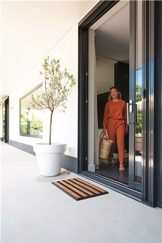 Gummi mit allseitiger Anlaufkante · Farbe natur/schwarz · eingearbeitete Polyamid-Borsten für hohen Reinigungseffekt · zusätzlich eingearbeitete Kokosstreifen · rutschhemmender Rücken · Stärke 14 mm · Weitere technische Eigenschaften Ausführung: mit Kokoseinlagen