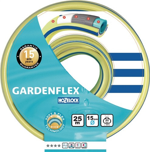 flexibler 5-schichtiger Schlauch mit Tricotgewebe-Einlage und synthetischen Textilfäden · formstabil · zweischichtige PVC-Schlauchseele · glatte PVC-Decke · hohe Druckbeständigkeit · abriebfest · UV-beständige Schlauchdecke · cadmiumfrei und baryumfrei · mit wabenförmiger Soft & Flex Technology · ausgezeichnete Biegefestigkeit und Knick-Beständigkeit · Temperaturbereich: -20 °C bis +60 °C · zur Wasserversorgung und für Reinigungsarbeiten in Industrie, Handwerk, Kommunalbetrieben, Hoch- und Tiefbau, Landwirtschaft und Gärtnereien · Weitere technische Eigenschaften Gewicht: 0,401kg/m