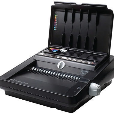 Das CombBind C450E eignet sich ideal für Büros mit mittlerem Bindebedarf. Das Stanzen des Papiers erfolgt elektrisch und vereinfacht dadurch den Prozess noch mehr. Mit einem Papierseparator für die optimale Anzahl an Blättern und automatische Zentrierung ausgestattet. Stanzt bis zu 25 DIN A4 Blatt elektrisch oder manuell · max. Anzahl der Blätter je Bindearbeitsgang mit Plastikrücke: 450 Bl. · max. Anzahl der Blätter je Lochungsarbeitsgang: 25 Bl. · max. Breite des zugeführten Materials: 297 mm · max. Dicke des Stapels je Lochungsarbeitsgang: 2,5 mm · max. Durchmesser des Binderückens: 51 mm · Tiefe: 450 mm · Verwendung für Papierformat: DIN A4, DIN A3 quer · Maße: 44 x 17 x 45 cm (B x H x T) · Farbe: grau/anthrazit · Höhe: 170 mm · Anzahl der Stanzlöcher: 21 Stanzlöcher · Garantie gewährt: Ja · Masse (Gewicht): 15,6 kg · Breite: 440 mm · Bindematerial: Kunststoff · Ausführung der Lieferzusammenstellung: inkl. Starter Set Bindezubehör · Art der Stanzung: elektrisch · Garantiedauer: 2 Jahre