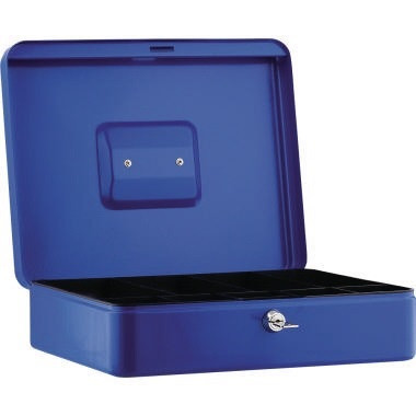 Nahtlos gezogen, kratzfest lackiert. Lieferung mit praktischem Kunststoffeinsatz und zwei Schlüsseln. Groß. · Gehäusefarbe: blau · Schloss vorhanden: Ja · Material des Hartgeldeinsatzes: Kunststoff · Maße: 30 x 9 x 24 cm (B x H x T) · Farbe des Einsatzes: schwarz · Anzahl der Fächer für Hartgeld: 5 Fächer für Hartgeld · Anzahl der Fächer für Banknoten: 4 Fach für Banknoten · Material des Gehäuses: Stahl