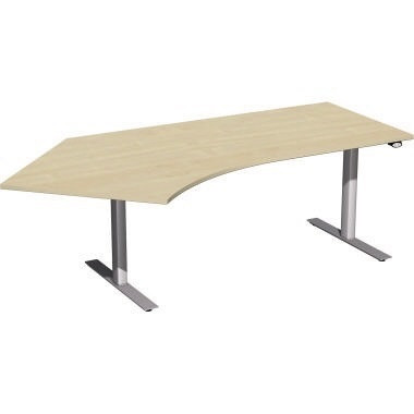 Geramöbel Schreibtisch Elektro Flex 216,6 x 68-116 x 80/113 cm (B x H x T) Dreischicht-Feinspan, melaminharzbeschichtet lichtgrau · Form des Gestells: T-Fuß · Material der Platte: Dreischicht-Feinspan, melaminharzbeschichtet · Verkettbarkeit möglich: Nein · Maße: 216,6 x 68-116 x 80/113,1 cm (B x H x T) · höhenverstellbar: Ja · Höheneinstellbarkeit möglich: Ja · Farbe des Gestells: silber · Farbe der Tischplatte: ahorn · Elektrifizierung möglich: Nein · Form der Platte: Freiform links · Dicke der Platte: 2,5 cm · Art der Höhenverstellung: elektronisch