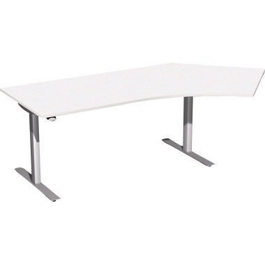 Geramöbel Schreibtisch Elektro Flex 216,6 x 68-76 x 80/113 cm (B x H x T) Dreischicht-Feinspan, melaminharzbeschichtet lichtgrau · Elektrifizierung möglich: Nein · Material der Platte: Dreischicht-Feinspan, melaminharzbeschichtet · Maße: 216,6 x 68-76 x 80/113,1 cm (B x H x T) · höhenverstellbar: Ja · Form des Gestells: T Fuß · Höheneinstellbarkeit möglich: Ja · Verkettbarkeit möglich: Nein · Farbe der Tischplatte: weiß · Dicke der Platte: 2,5 cm · Ausführung des Kabeldurchgangs: Travers · Art der Höhenverstellung: elektronisch · Farbe des Gestells: silber · Form der Platte: Freiform rechts