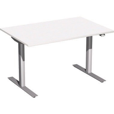 Geramöbel Schreibtisch Elektro Flex 120 x 68-116 x 80 cm (B x H x T) Dreischicht-Feinspan, melaminharzbeschichtet lichtgrau · Höheneinstellbarkeit möglich: Ja · Farbe der Tischplatte: weiß · Verkettbarkeit möglich: Nein · Material der Platte: Dreischicht-Feinspan, melaminharzbeschichtet · Maße: 120 x 68-116 x 80 cm (B x H x T) · höhenverstellbar: Ja · Art der Höhenverstellung: elektronisch · Farbe des Gestells: silber · Form der Platte: Rechteck · Dicke der Platte: 2,5 cm · Form des Gestells: T-Fuß