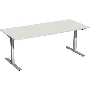 Geramöbel Schreibtisch Elektro Flex 180 x 68-116 x 80 cm (B x H x T) Dreischicht-Feinspan, melaminharzbeschichtet lichtgrau · Form des Gestells: T-Fuß · Verkettbarkeit möglich: Nein · Material der Platte: Dreischicht-Feinspan, melaminharzbeschichtet · Maße: 180 x 68-116 x 80 cm (B x H x T) · Höheneinstellbarkeit möglich: Ja · Form der Platte: Rechteck · Farbe des Gestells: silber · Farbe der Tischplatte: lichtgrau · Dicke der Platte: 2,5 cm · Art der Höhenverstellung: elektronisch · höhenverstellbar: Ja